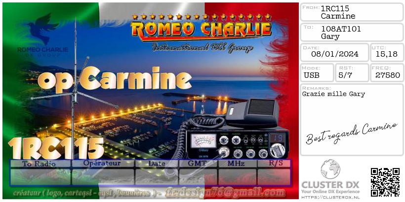 Confirmed contact with Carmine 1RC115 Cosenza, Calabria, Italy.