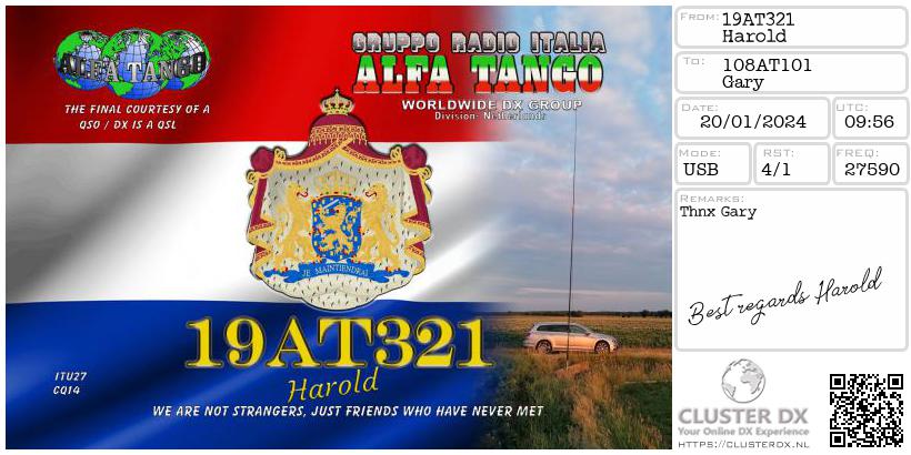 Confirmed contact with Harold 19AT321 Groningen, Netherland.