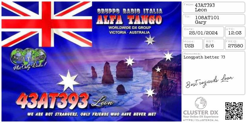 Confirmed contact Longpath with Leon 43AT393 Victoria Australia.