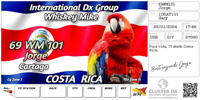 Confirmed contact with Jorge 69WM101 Costa Rica.