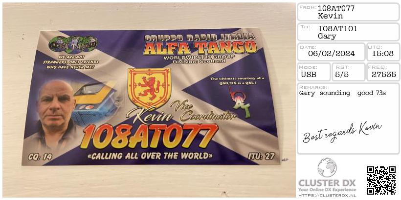 Confirmed contact with Mr Kevin - 108AT077 Vice-Coordinator, Scotland