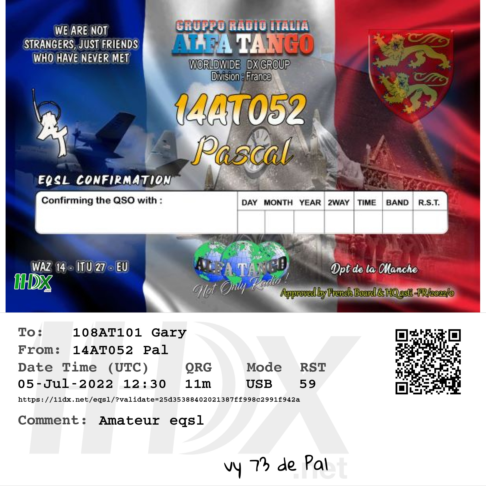 Confirmed contact with Pascal 14AT052 France.