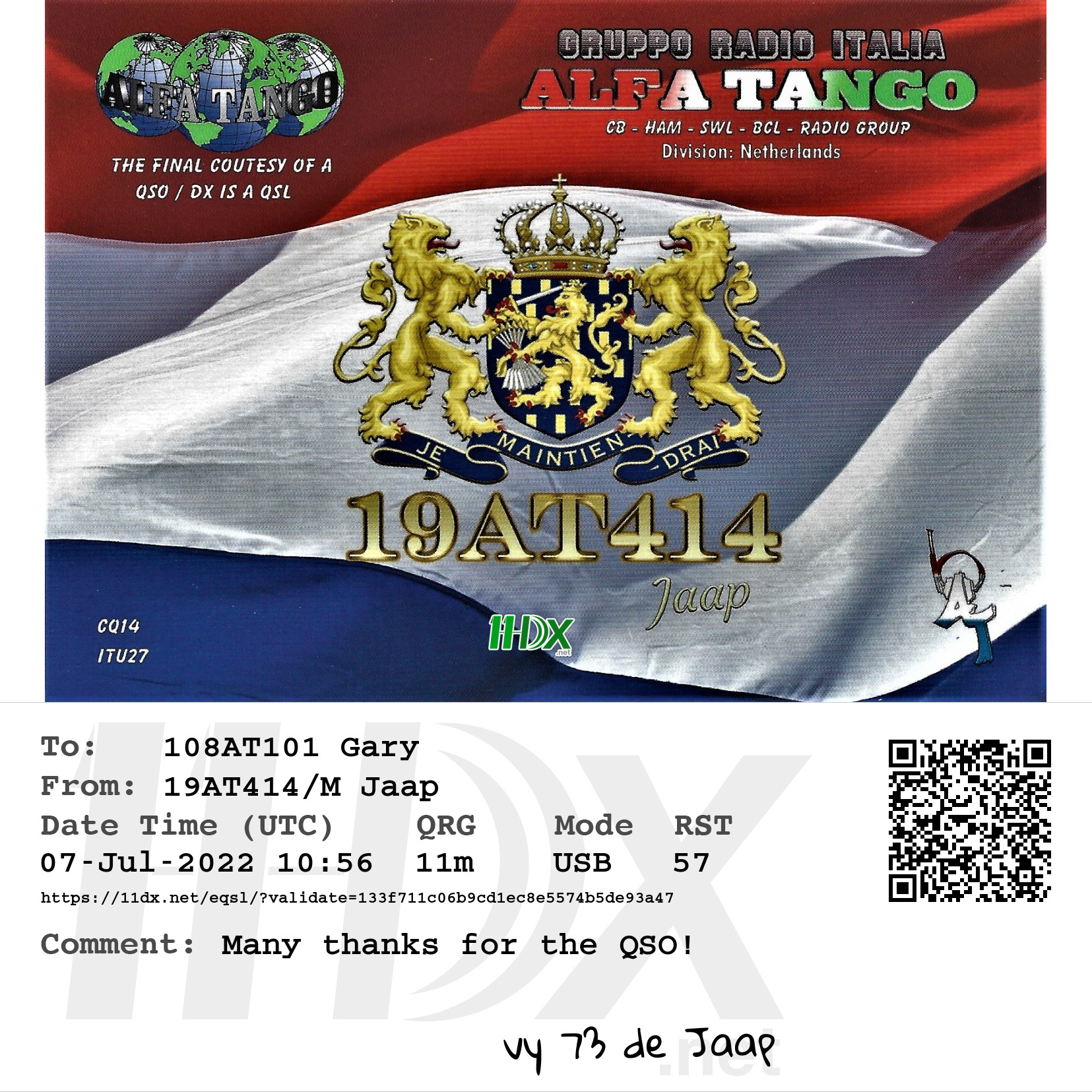 Confirmed contact with Japp 19AT414 the Netherlands.