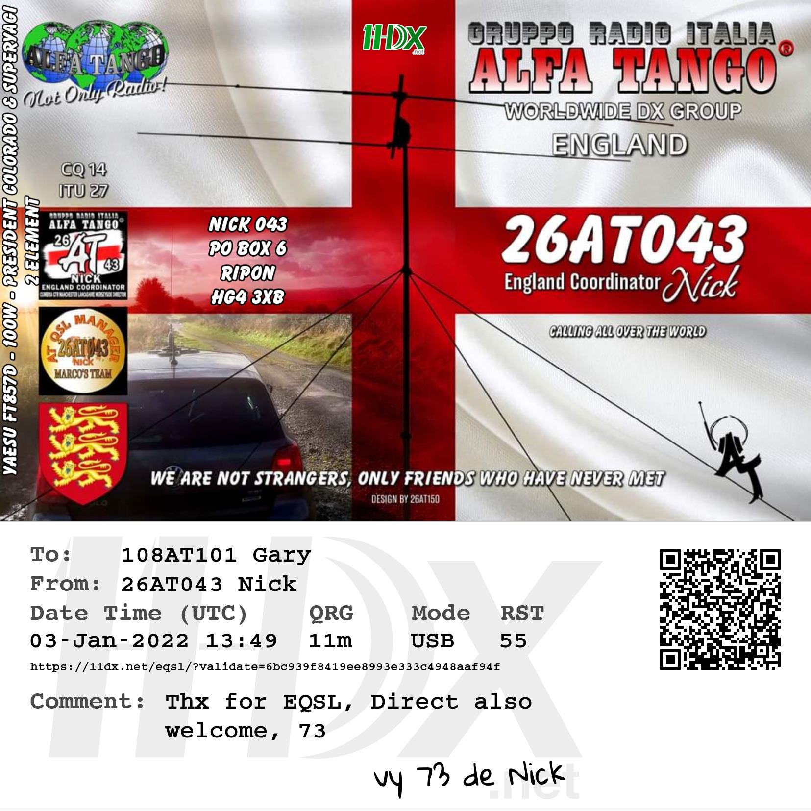 Confirmed contact with Nick 26AT043 Ripen, England.