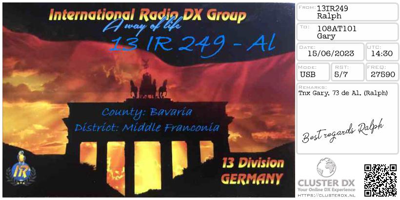 Confirmed contact with Ralph 13IR249 Germany.