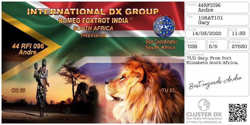 Confirmed contact with Andre 44RFI096