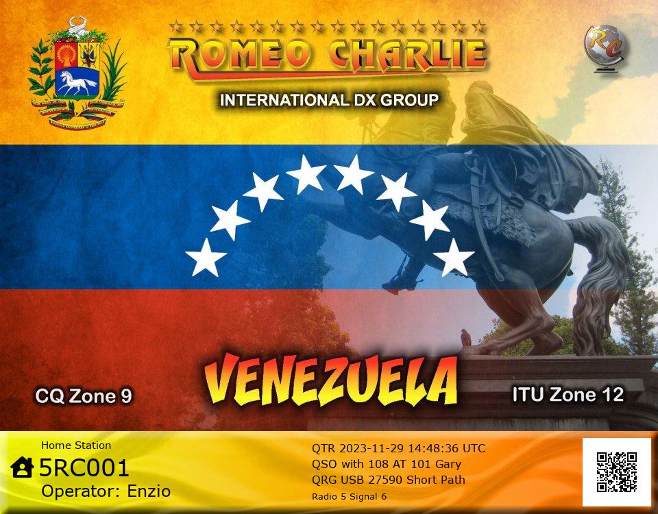 Confirmed contact with Enzio 5RC001 Venezuela.