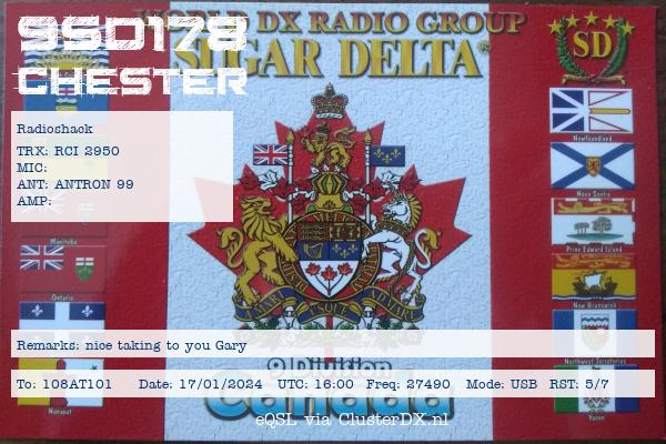 Confirmed contact with Chester 9SD178 Manitoba, Canada
