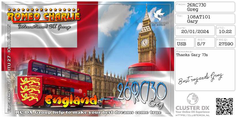 Confirmed contact with Greg 26RC730 England.