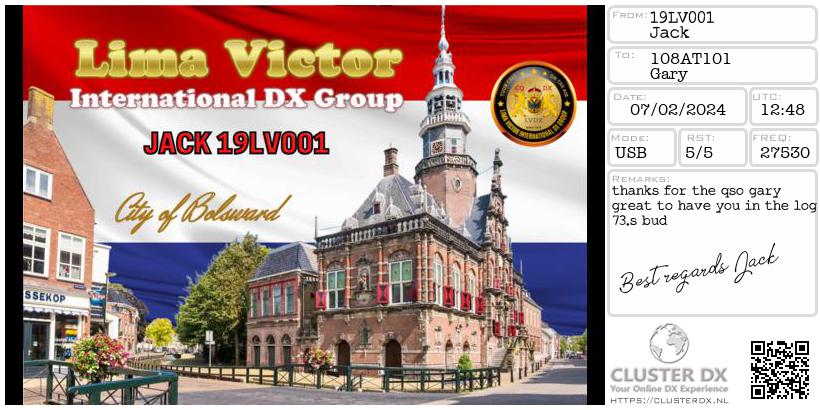 Confirmed contact with Jack - 19LV001 Friesland, The Netherlands.