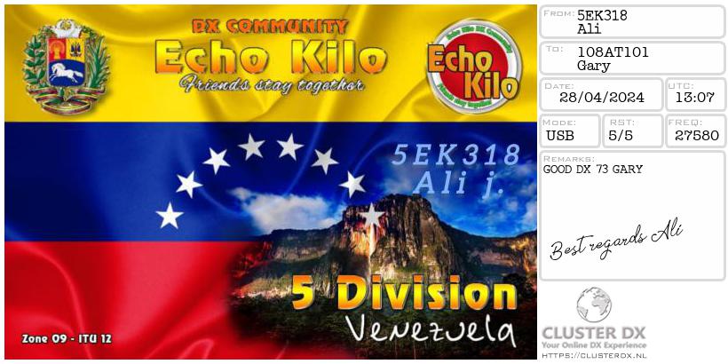 Confirmed contact with Ali - 5EK318 La Guaira, Venezuela.
