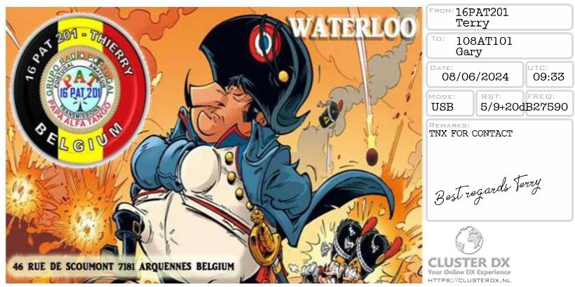 Confirmed contact with Terry 16PAT201 - Waterloo, Belgium.