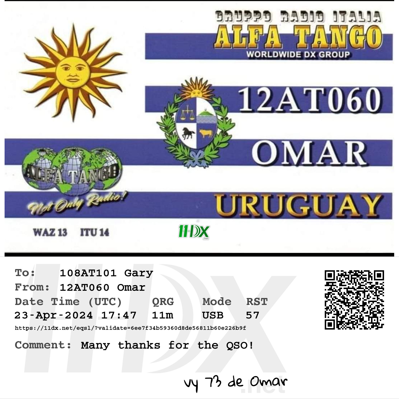 Confirmed contact with Omar 12AT060 Solymar, Canelones, Uruguay.