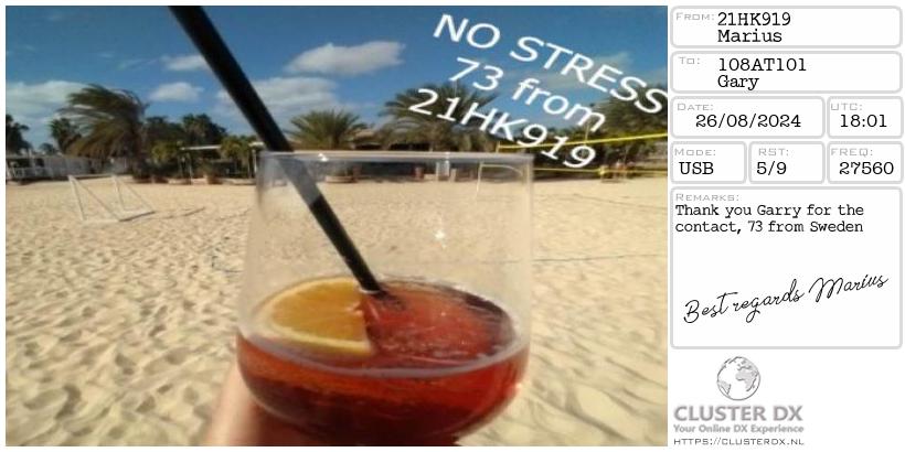 Confirmed contact with Marius, 21HK919 Skane Sweden