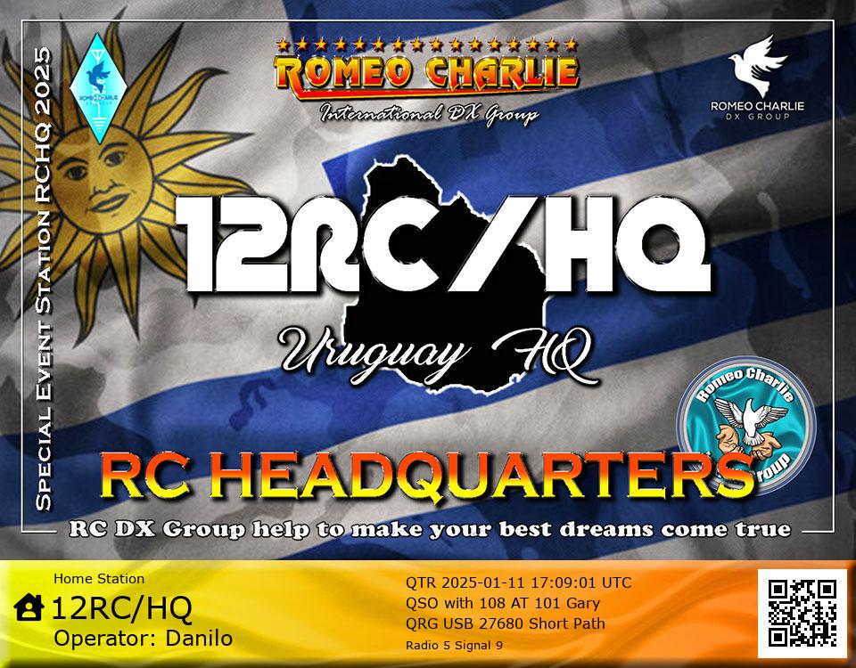 Confirmed contact with Omar 12RC/HQ Danilo, Uruguay.
