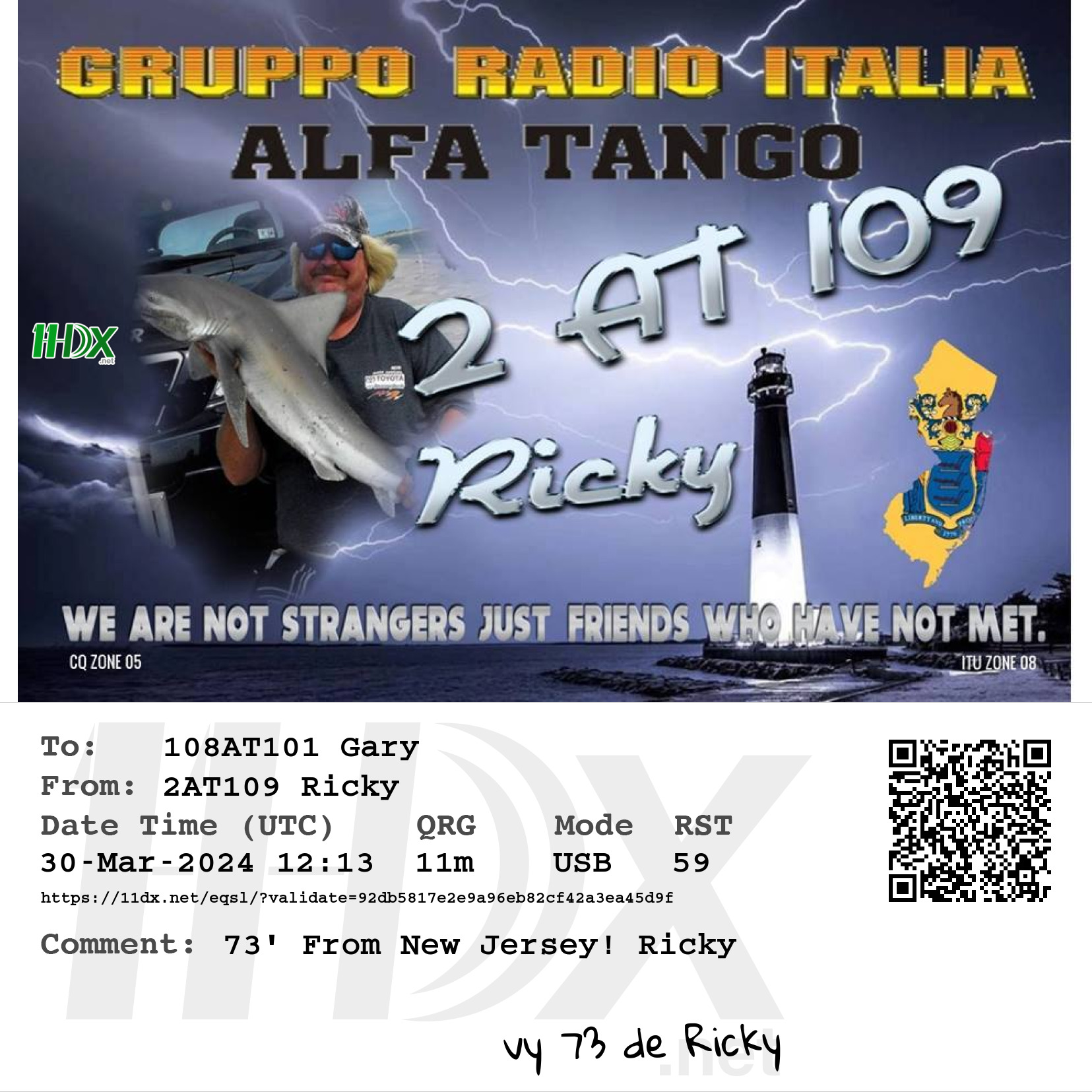 Confirmed contact with Ricky 2AT109 From New Jersey USA.