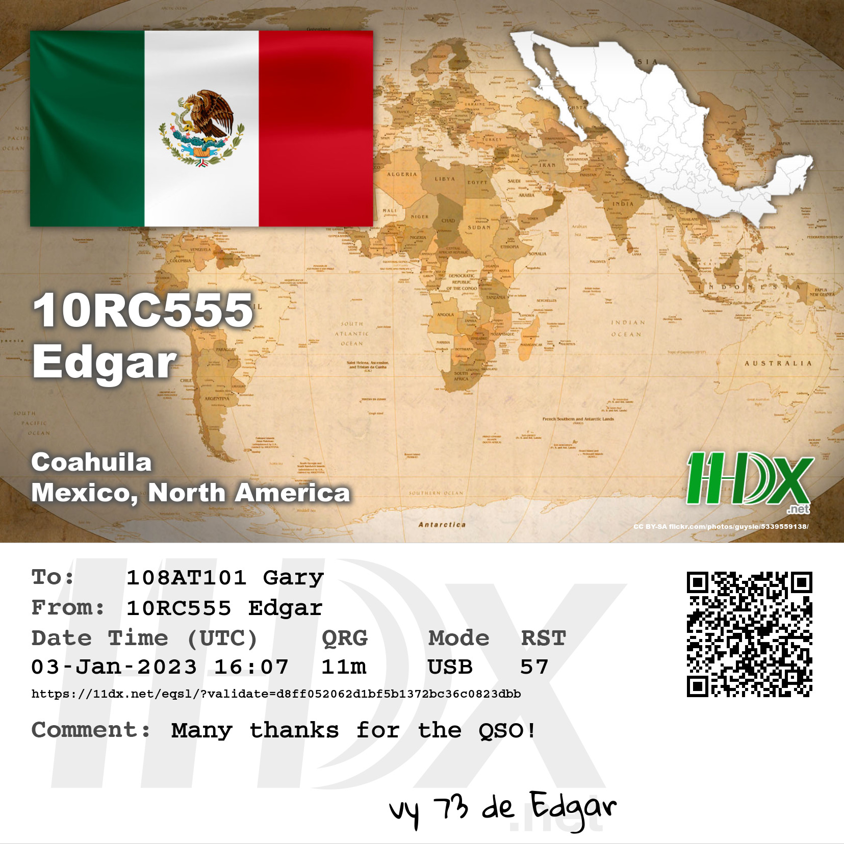 Confirmed contact with Edgar 10RC555 Coahuila Mexico, North America.