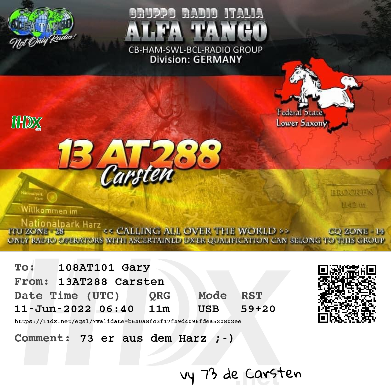 Confirmed contact with 13AT288 Carsten Germany.