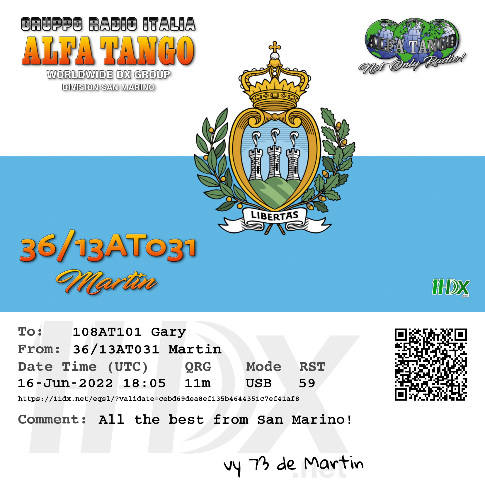 Confirmed mobile contact with 36/14AT031 San Marino.